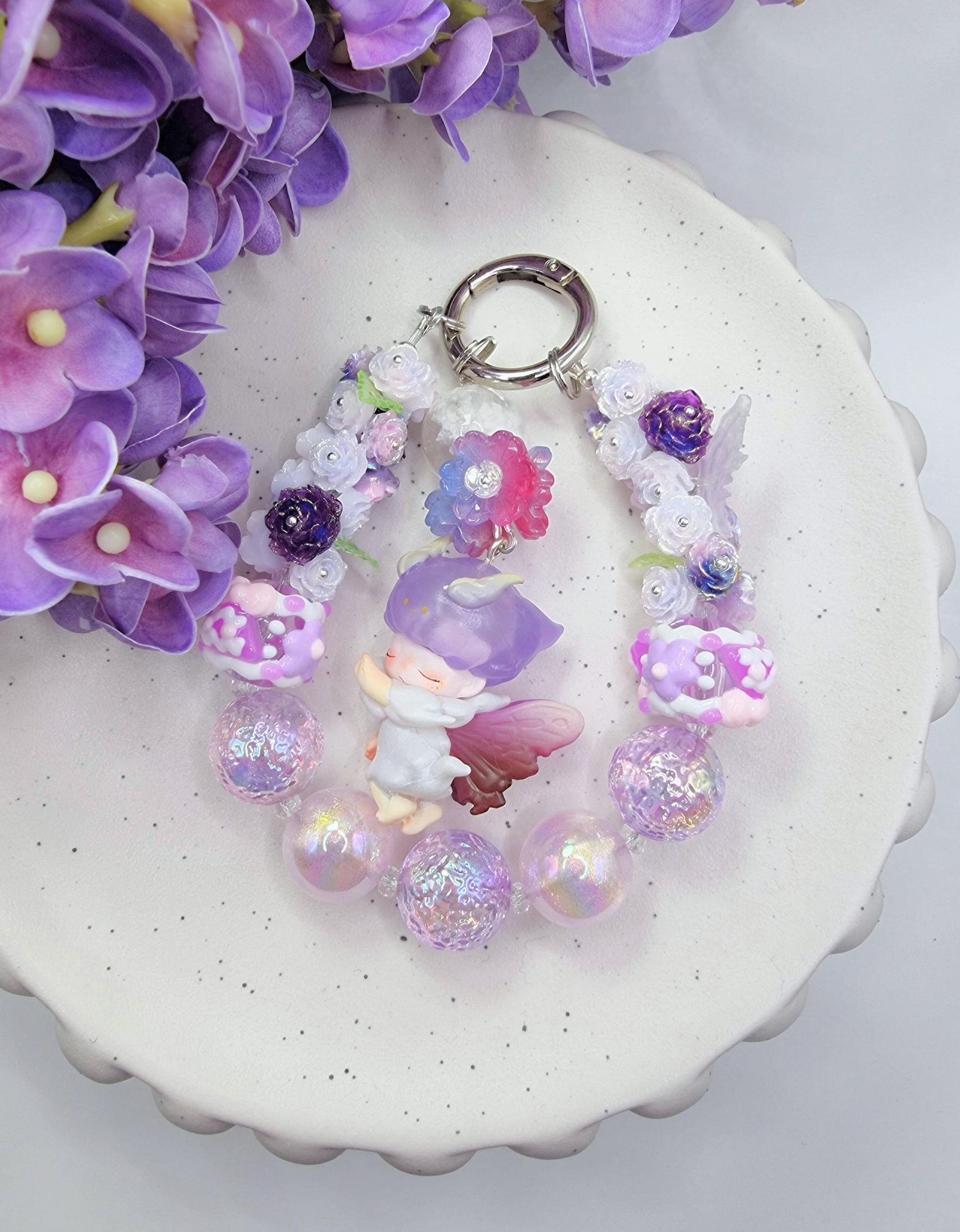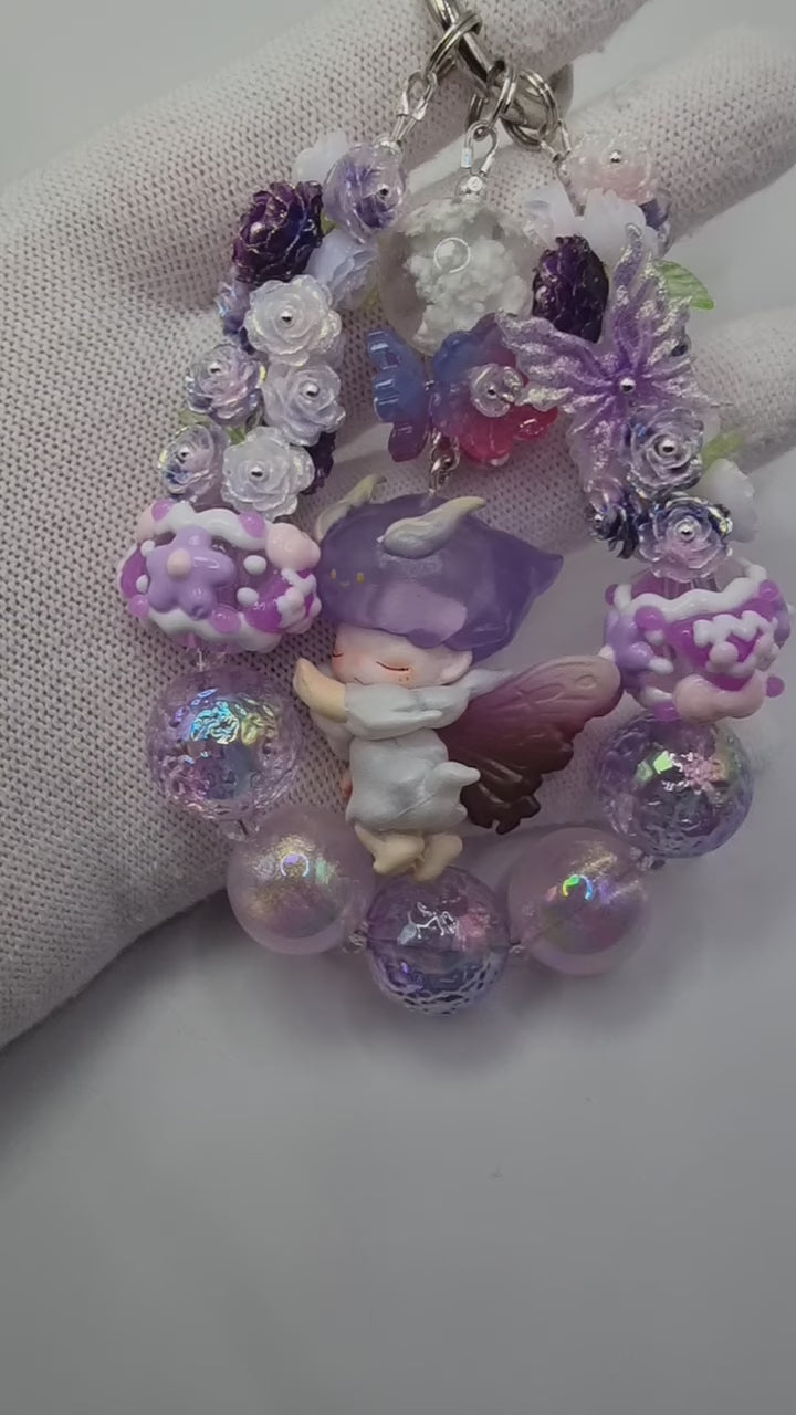 Add a touch of whimsy to your bag with the Purple Butterfly Dimoo charm, surrounded by soft, delicate flowers. This playful accessory brings a splash of colour and charm, perfect for brightening your day wherever you go.