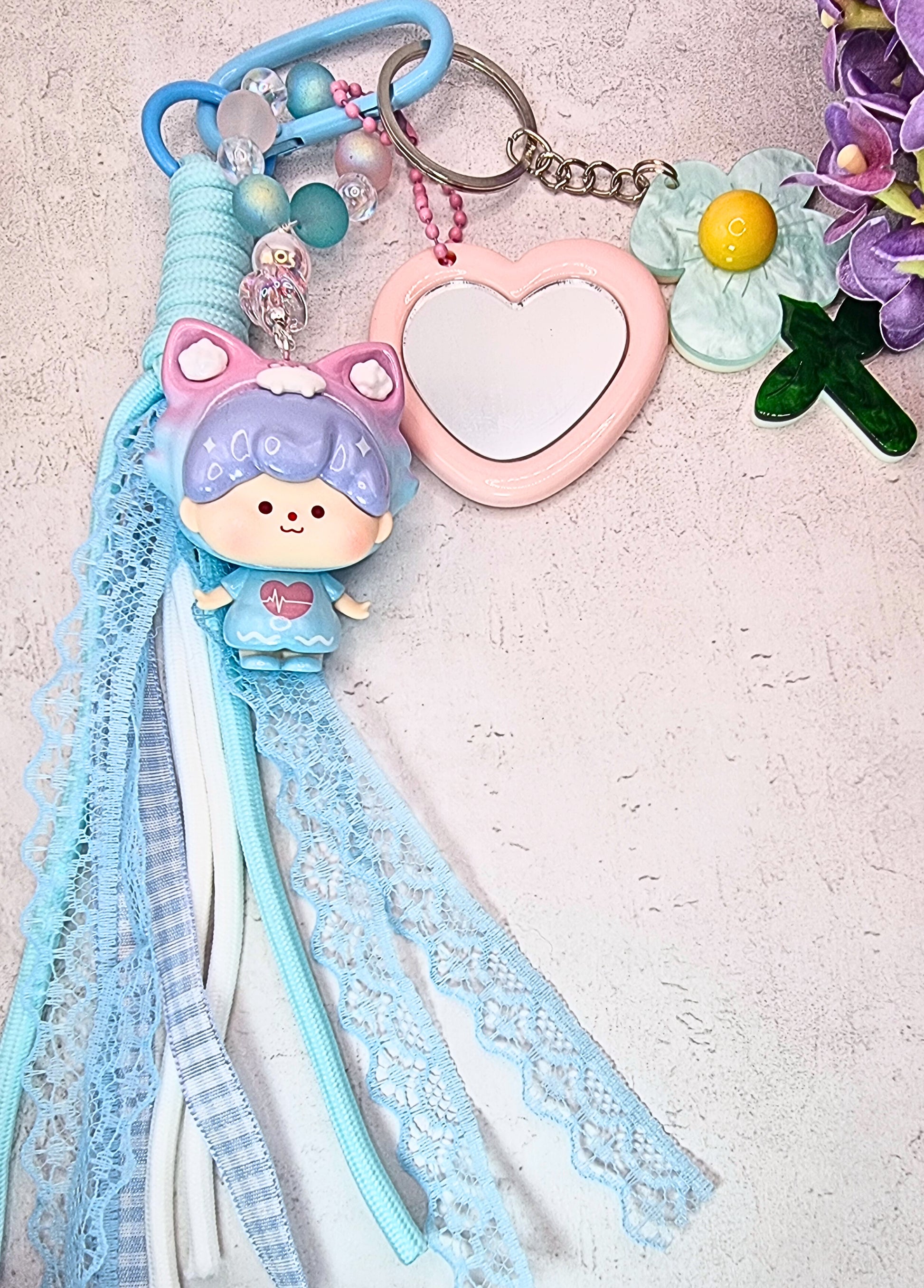 Elevate your bag game with Mun Mun Bag Charm. Each charm includes an authentic Mun Mun blind box doll for a touch of whimsy. Comes with a mirror, flower charm, and paracord, adding a unique flair to your style on-the-go.
